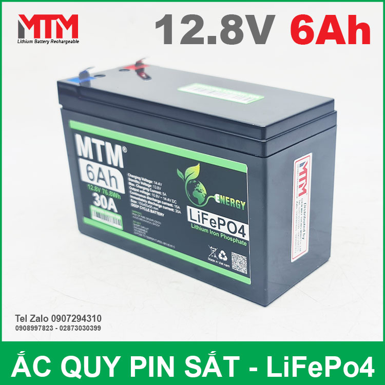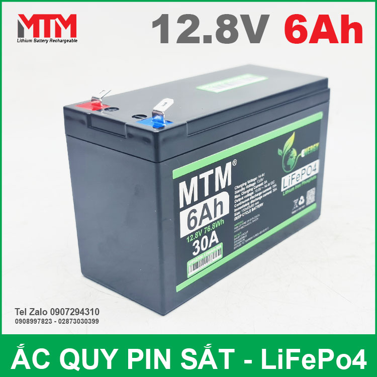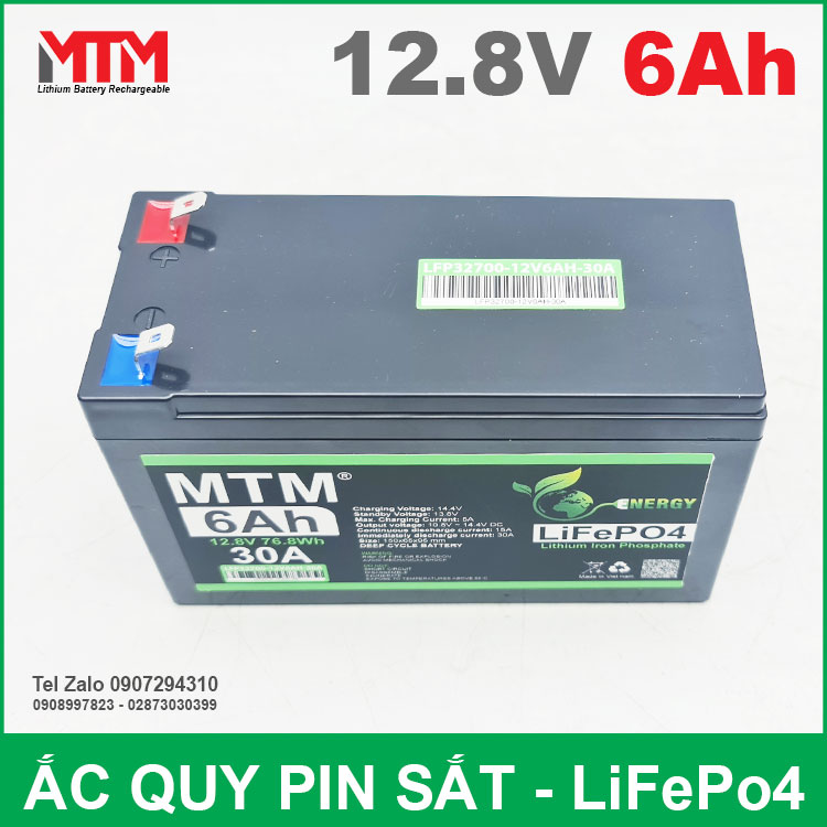 Bình ắc quy pin sắt LiFePo4 12V 6Ah 30A sử dụng mạch bảo vệ BMS có cân bằng cell pin. Đây là loại bình ắc quy được tích hợp bằng cell pin sắt LiFePo4 nên có tuổi thọ cao dung lượng lớn nhưng lại có trọng lượng nhẹ hơn so với bình ắc quy truyền thống. Loại ắc quy này đang được khách hàng ưu chuộng và sử dụng nhiều các lĩnh vực khác nhau như xe máy, xe điện, thiệt bị điện tử, hệ thống năng lượng mặt trời và nhiều ứng dụng khác. Không dùng bình này khởi động xe máy, ôtô, máy phát điện ….