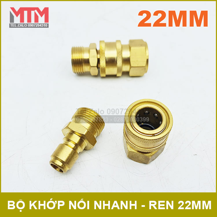Bộ khớp nối nhanh ống ren 22mm sử dụng cho máy rửa xe gia đình áp lực cao. Được thiết kế với công nghệ khớp nối bi chịu lực, chống rò rỉ nước khi có áp lực càng lớn. Sử dụng đơn giản tiện lợi để nối nhanh ống dây rửa xe vào máy và ống dây vào súng xịt vòi xịt có ren 22mm.