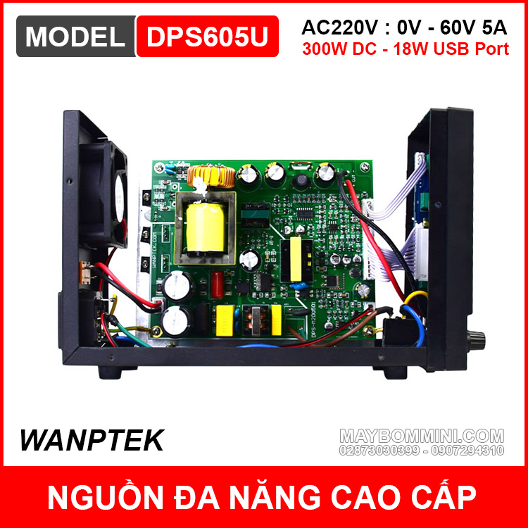 Bán bộ nguồn đa năng 0-60V 5A DPS605U Wanptek cao cấp chất lượng chính hãng giá tốt. Đây là nguồn điện biến thế từ điện AC220V hoặc AC110V ra điện DC có thể điều chỉnh từ 0V đến 60V với công suất tối đa 5A 300W rất tiện lợi phù hợp cho nhiều mục đích khác nhau, dùng làm nguồn điện cho thiết bị, nguồn điện cho kỹ sư điện tử, nguồn điện thử nghiệm test thiết bị, sạc pin bình ắc quy và nhiều ứng dụng khác.