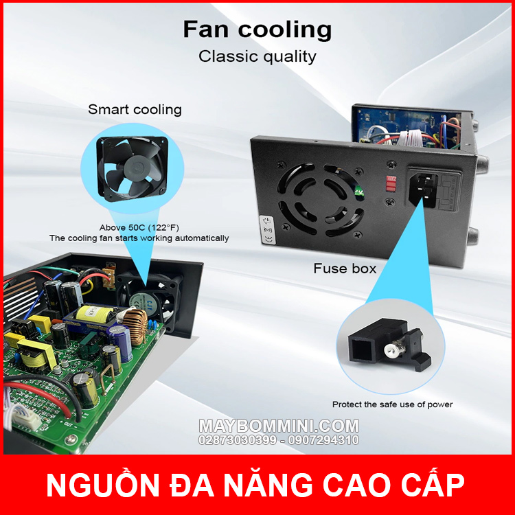 Công suất tối đa: 5A – 300W điều chỉnh.