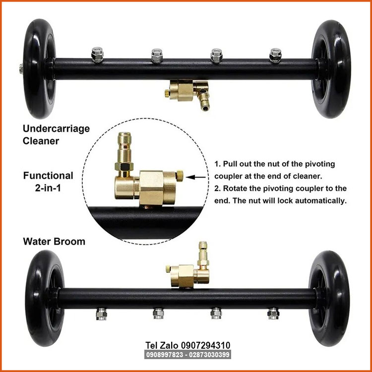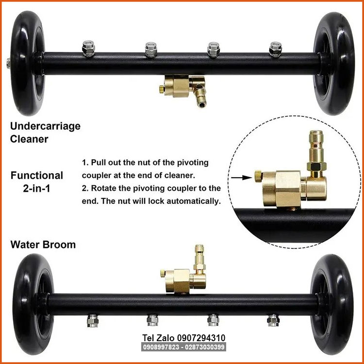 Bộ xịt rửa gầm xe sàn nhà 4 béc phun có chỉnh hướng áp lực. Được thế kế 2 trong 1 là có thể sử dụng xịt rửa gầm xe và sàn nhà vỉa hè với chốt chỉnh hướng béc phun tiện lợi cao cấp, đây là bộ dụng cụ cần thiết khi bạn tự vệ sinh xe.