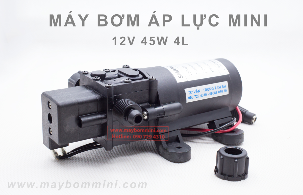 Nhà cung cấp sỉ và lẻ các loại máy bơm nước mini áp lực 12V 45W là loại bơm nhỏ gọn dùng nguồn 12v 5A rất thích hợp phun thuốc trừ sâu, phun sương tưới lan và vệ sinh máy lạnh. Máy bơm nước mini 12v 45w do maybomapluc.com độc quyền phân phối tại Việt Nam với thương hiệu SmartPumps.