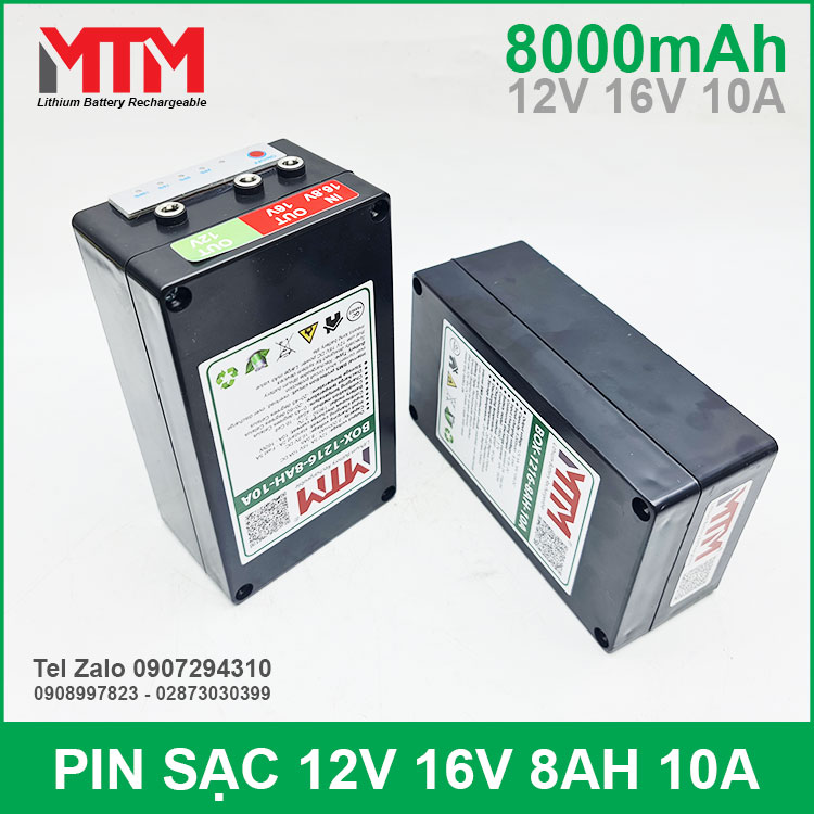 Hộp box pin sạc lithium 12V 16V 8000mAh 10A MTM sử dụng nguồn điện di động mini, chạy motor, quạt 12V 16V, máy bơm mini, pin loa kéo, pin camera, pin thiết bị điện tự động, pin đèn led, pin sạc đồ chơi, pin dự phòng cho khoá cửa wifi modem box tivi và pin bình ắc quy cho xe điện trẻ em. Pin có tuổi thọ cao đủ dung lượng và dòng chịu tải lớn rất khỏe mà nhỏ gọn rất tiện lợi khi sử dụng.