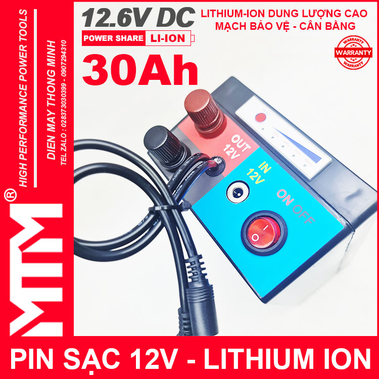 Chuyên cung cấp phân phối bán box pin sạc lithium 12V 30000mAh 30A MTM sử dụng làm UPS dự phòng, chạy motor, quạt 12v, máy bơm mini, pin loa kéo, pin camera, pin thiết bị điện tự động, pin đèn led, pin sạc đồ chơi, pin dự phòng cho khoá cửa wifi modem box tivi và pin bình ắc quy cho xe điện trẻ em. Pin có tuổi thọ cao đủ dung lượng và dòng chịu tải lớn rất khỏe mà nhỏ gọn rất tiện lợi khi sử dụng.