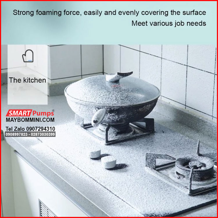 – Phun xịt bọt tuyết vệ sinh cho thiết bị nhà bếp quán ăn, gia đình.