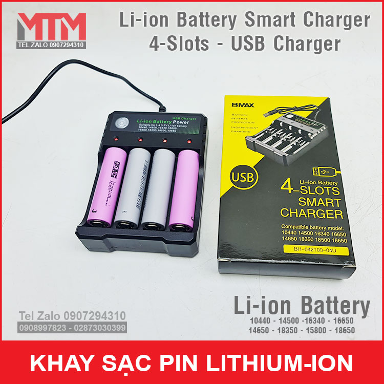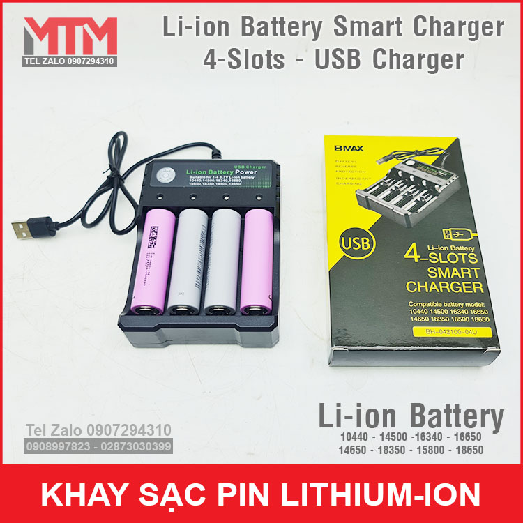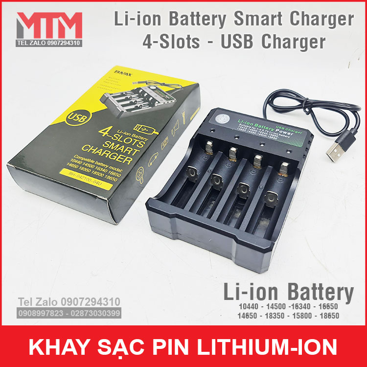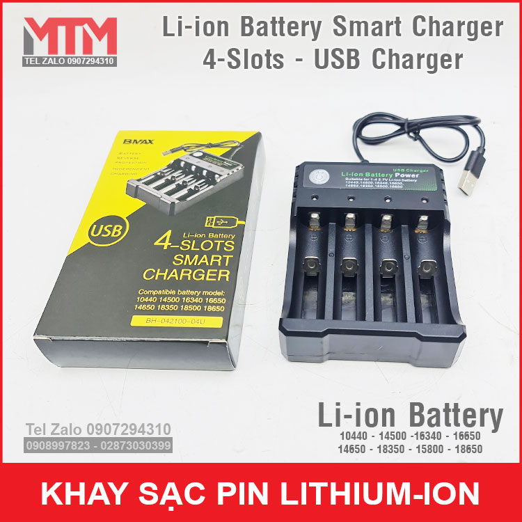 Khay sạc pin Lithium ion 4 khe – nguồn cổng sạc USB