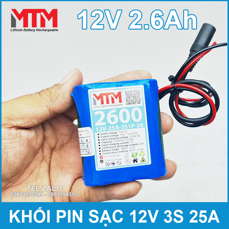 Khối pin sạc 12V 2.6Ah 25A 3S MTM ứng dụng làm nguồn đèn led, nguồn đèn quảng cáo, wifi modem, nguồn quạt tích điện, nguồn máy bơm mini, pin loa, pin camera, pin thiết bị điện tự động, pin đèn led, pin sạc đồ chơi, pin dự phòng cho khoá cửa và nhiều ứng dụng khác. Pin có tuổi thọ cao chất lượng được khách hàng tin dùng vì ổn định dòng chịu tải khỏe và nhỏ gọn rất tiện lợi khi sử dụng. Chúng tôi có nhận làm pin ghép pin thay pin thiết bị theo yêu cầu khách hàng gần xa với giá tốt.