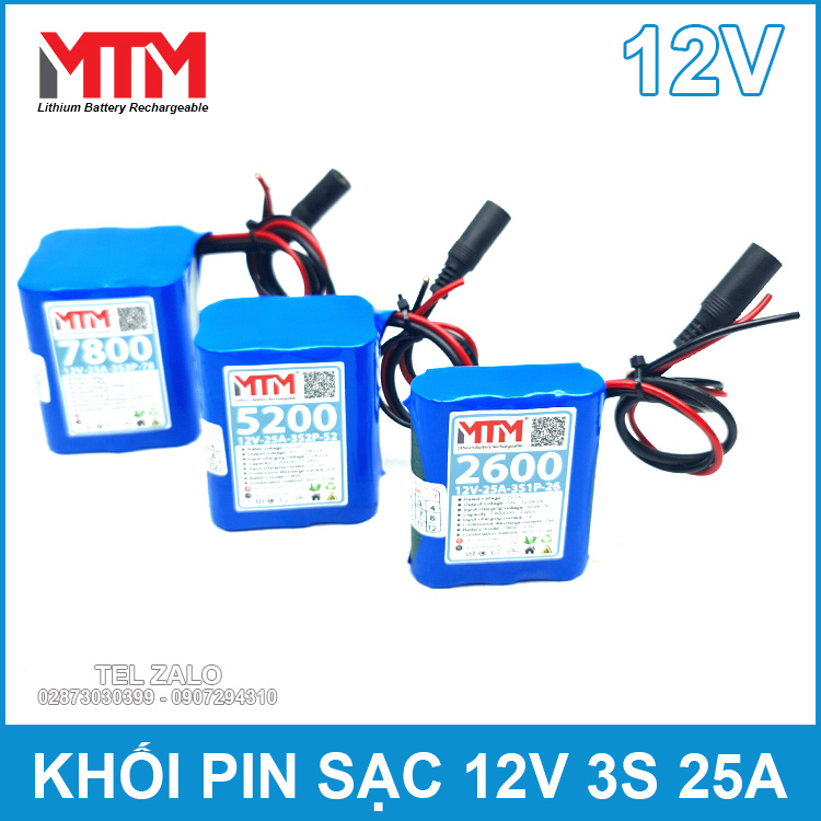 Khối pin sạc 12V 5.2Ah 25A 3S MTM ứng dụng làm nguồn đèn led, nguồn đèn quảng cáo, wifi modem, nguồn quạt tích điện, nguồn máy bơm mini, pin loa, pin camera, pin thiết bị điện tự động, pin đèn led, pin sạc đồ chơi, pin dự phòng cho khoá cửa và nhiều ứng dụng khác. Pin có tuổi thọ cao chất lượng được khách hàng tin dùng vì ổn định dòng chịu tải khỏe và nhỏ gọn rất tiện lợi khi sử dụng. Chúng tôi có nhận làm pin ghép pin thay pin thiết bị theo yêu cầu khách hàng gần xa với giá tốt.