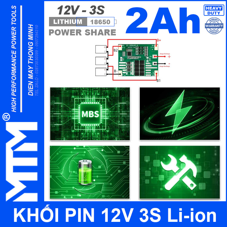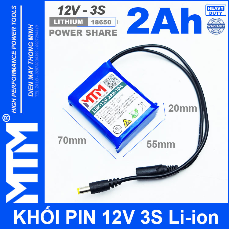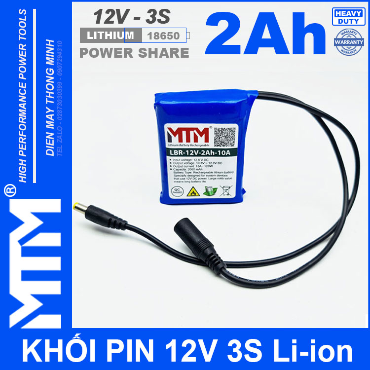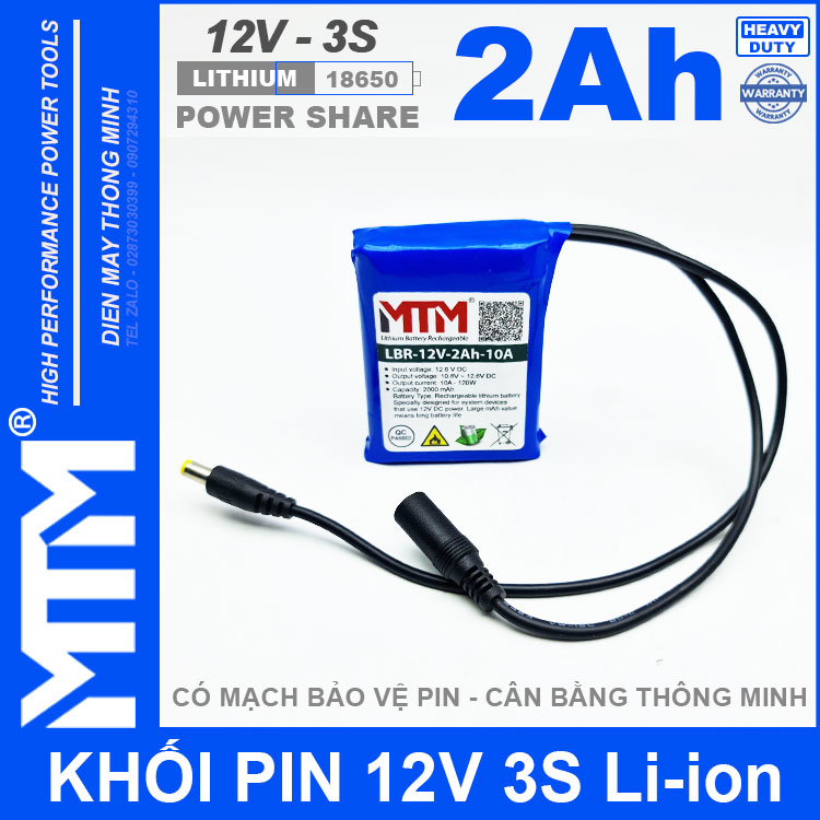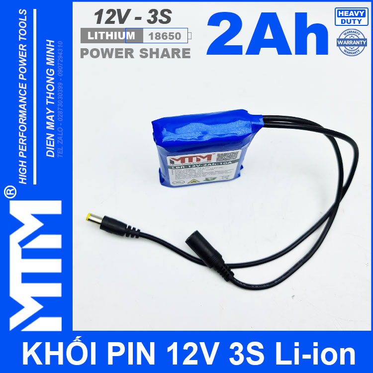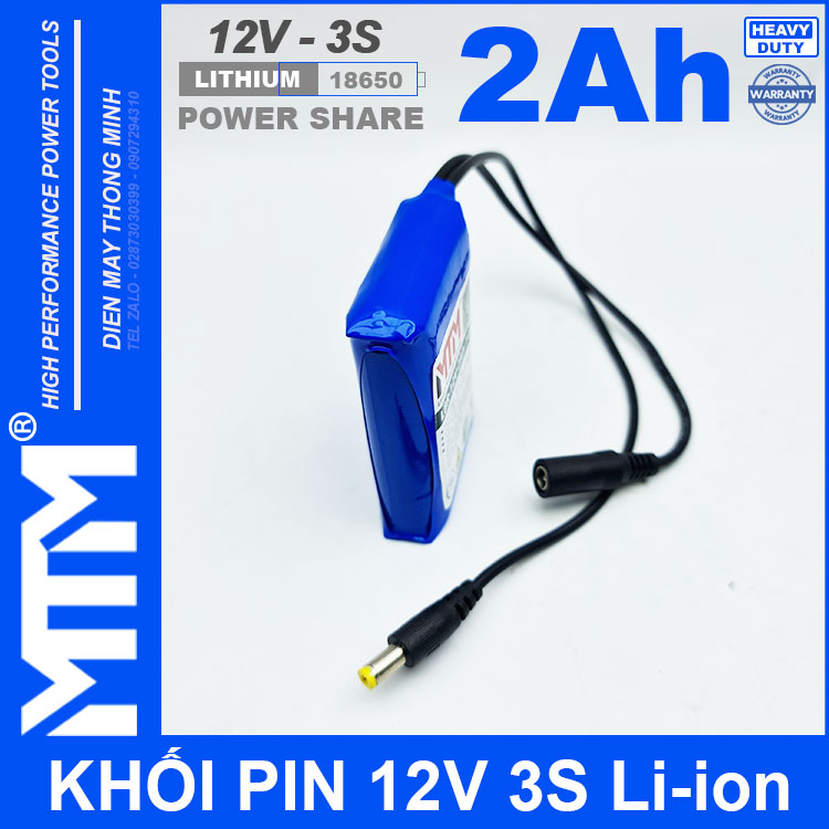 Khối pin sạc Li-ion 12V 2Ah 10A 3S MTM sử dụng để chạy motor, quạt, máy bơm mini, pin loa kéo, pin camera, pin thiết bị điện tự động, pin đèn led, pin sạc đồ chơi, pin dự phòng cho khoá cửa wifi modem box tivi. Pin có tuổi thọ cao chất lượng được khách hàng tin dùng vì ổn định dòng chịu tải khỏe và nhỏ gọn rất tiện lợi khi sử dụng. Chúng tôi có nhận làm pin ghép pin thay pin thiết bị theo yêu cầu khách hàng gần xa với giá tốt.