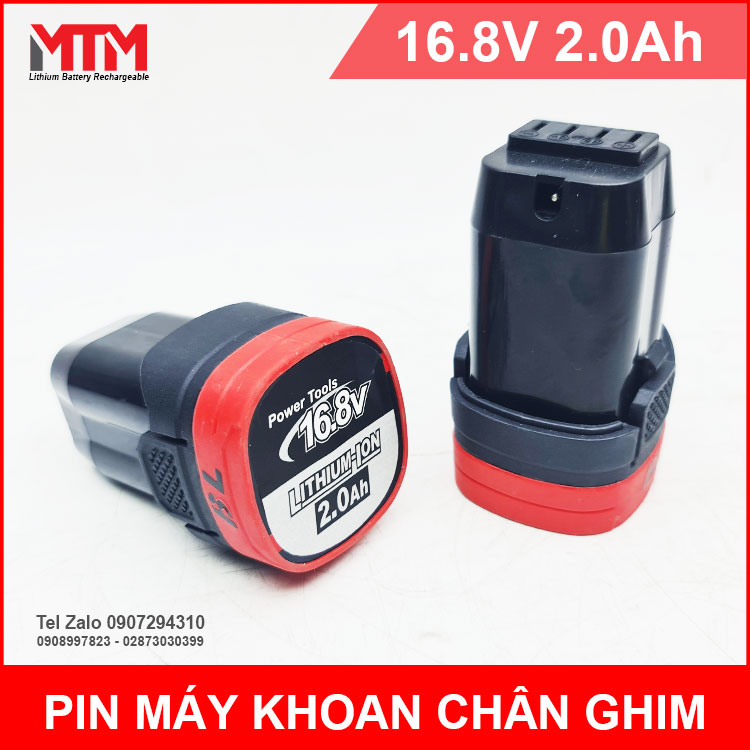Sử dụng pin chân ghim 16.8V loại pin 4 cell 18650 2Ah và sạc 16.8V dạng Adapter hoặc đế sạc.