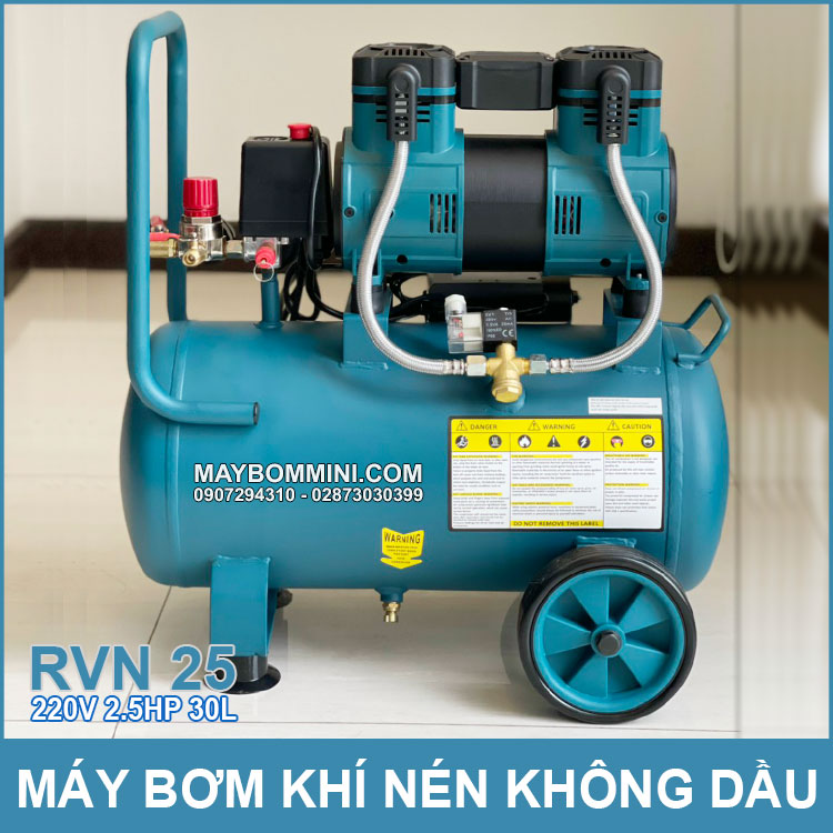 Phân phối máy bơm khí nén không dầu 220V 2.5HP 30L ROVER RVN-25-30L loại tua nén nhanh chính hãng với công nghệ bơm không dầu mới nhất hiện nay. Máy bơm hoạt động tiếng ồn thấp, thời gian nén đầy bình nhanh và áp lực mạnh, motor được sử dụng 100% lõi đồng nên động cơ rất bền và tiết kiệm điện khi sử dụng.