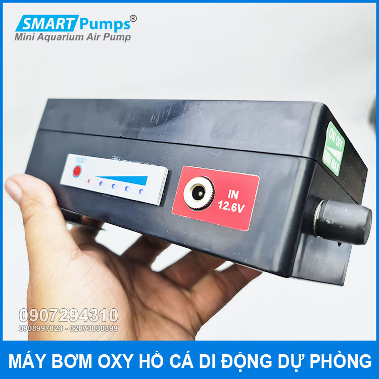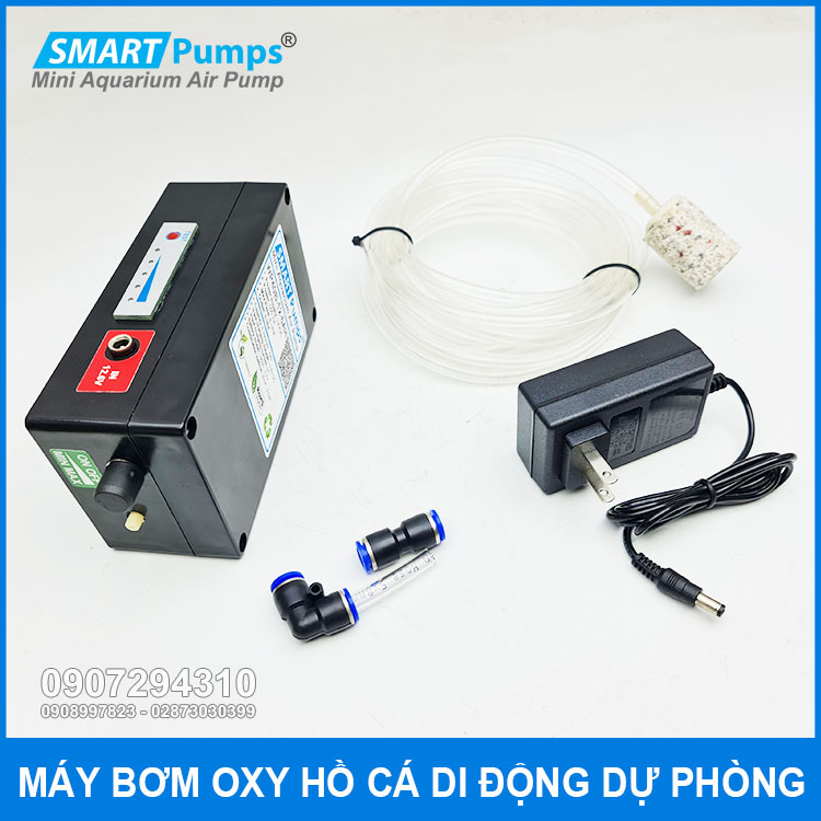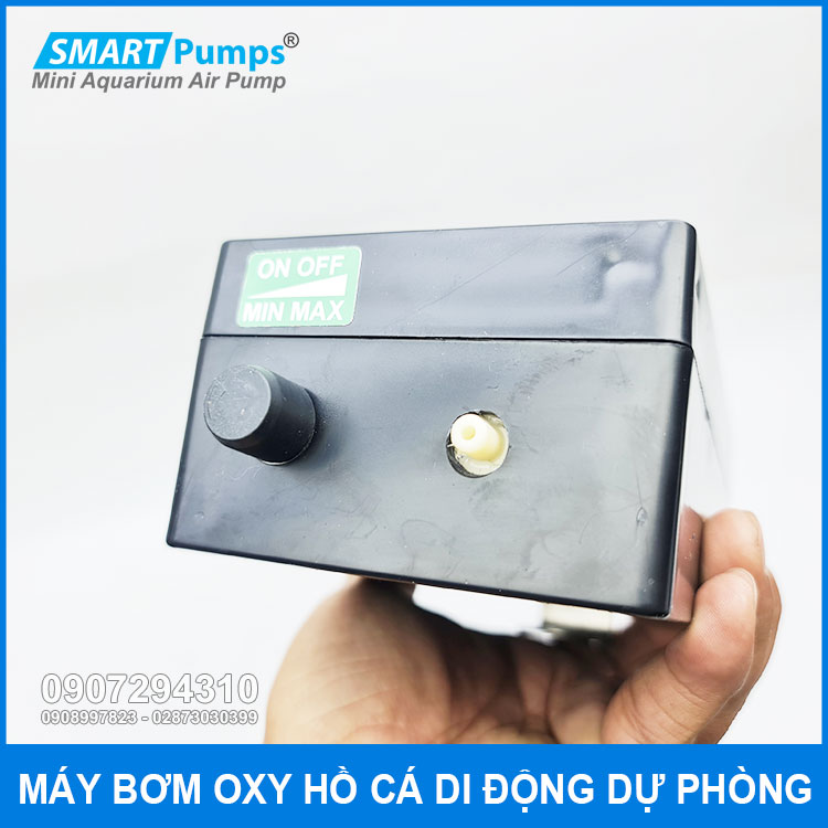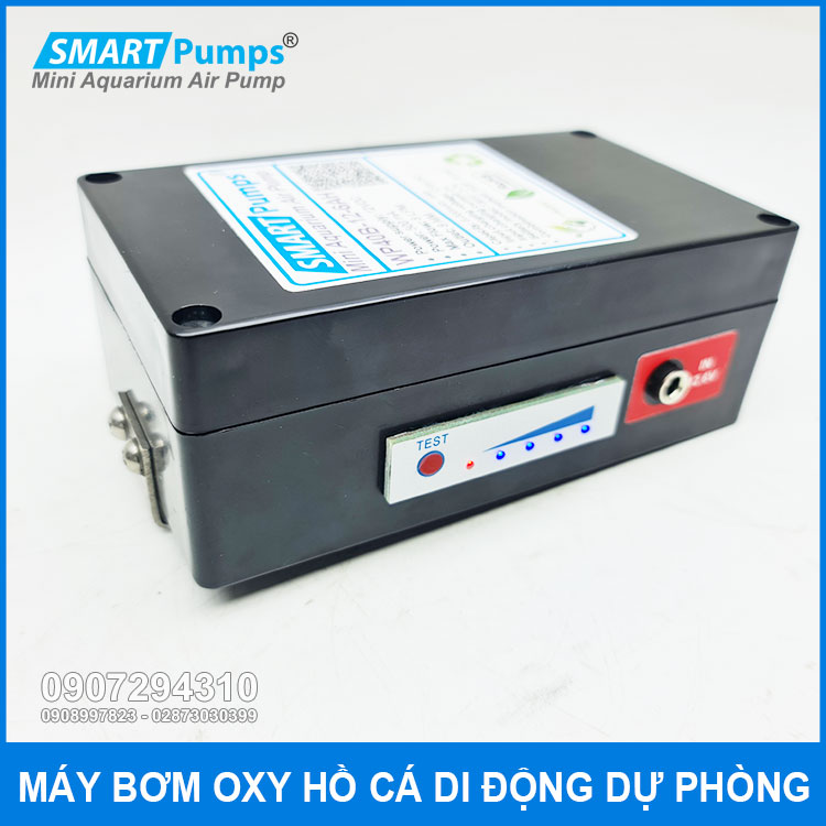 Máy bơm oxy mini dự phòng di động 12V 6W 8L 6Ah Smartpumps là loại máy bơm sục khí tích hợp pin sạc tiện dụng cho những chuyến đi câu cá hoặc dùng làm máy oxy dự phòng cho bể cá rất tốt. Sử dụng pin sạc và nhiều chế độ chạy tiết kiệm năng lượng khi dùng liên tục.
