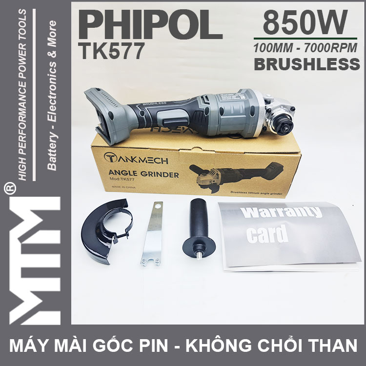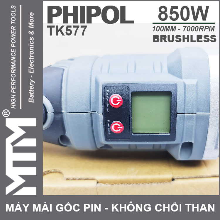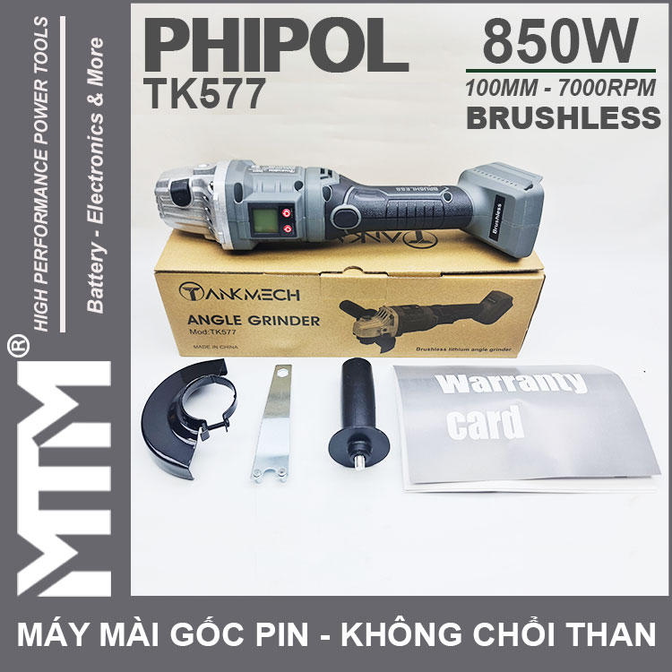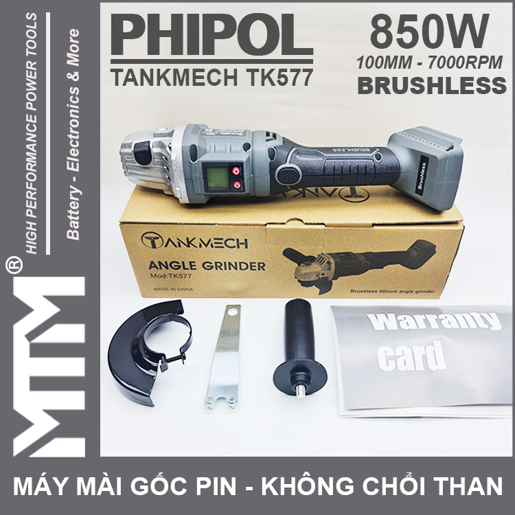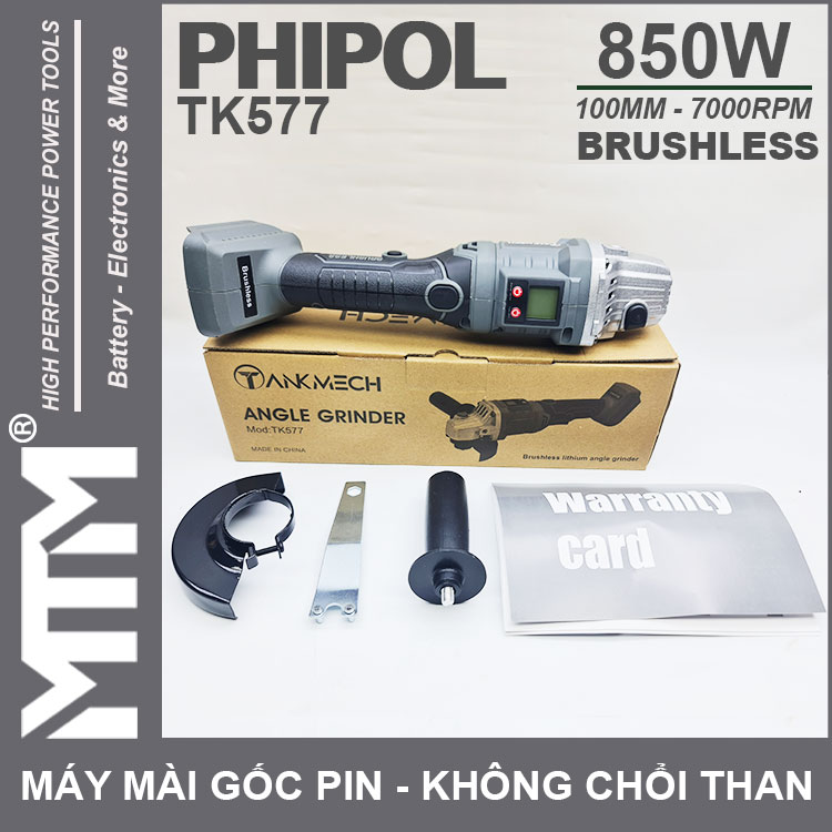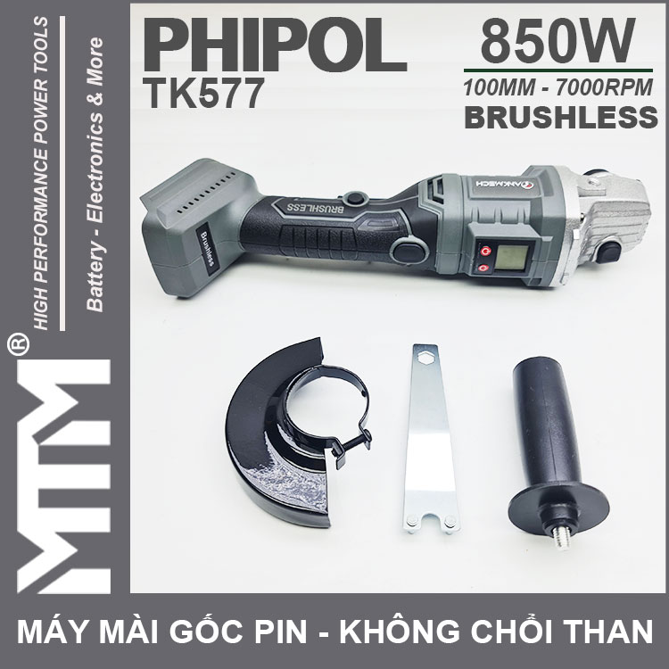 Máy mài góc dùng pin chân phồ thông 21V 850W 100MM không chổi than Phipol Tankmeck TK577 cao cấp chính hãng. Sử dụng công nghệ mới với motor không chổi than mạnh mẽ tiết kiệm điện, màn hình LCD chỉnh thông số tốc độ.