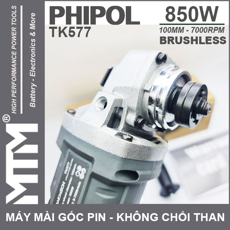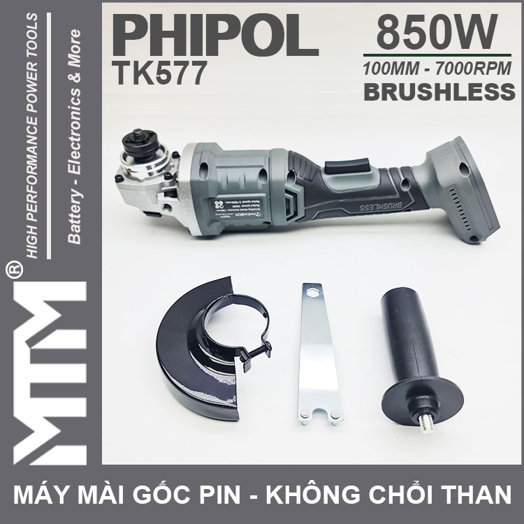 – Máy mài góc pin PHIPOL TK577 100mm sử dụng pin Li-ion 21V là một sản phẩm máy mài góc mới đến từ PHIPOL.