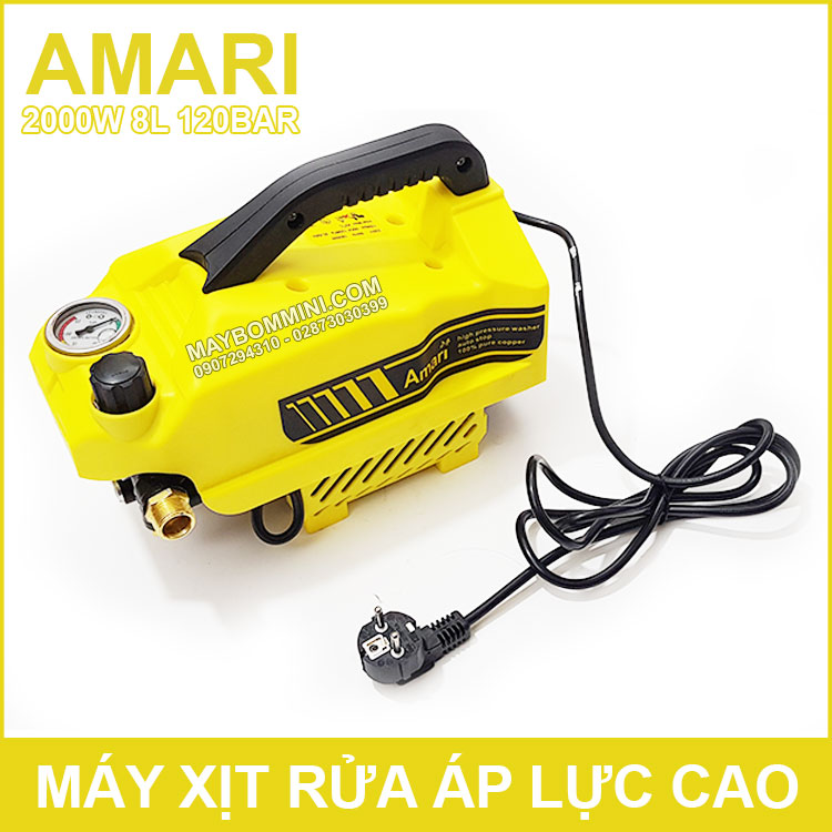 Chuyên phân phối bán máy xịt rửa áp lực cao 220V 2000W 120Bar 8L AMARI 30 có chỉnh áp lực là dòng máy áp lực cao tiện lợi để vệ sinh xe, vệ sinh bếp nhà hàng, nhà cửa, vật dụng, máy móc công nghiệp, vệ sinh máy lạnh được sản xuất với công nghệ mới chất lượng rất tốt và được Máy Bơm Mini phân phối chính hãng.