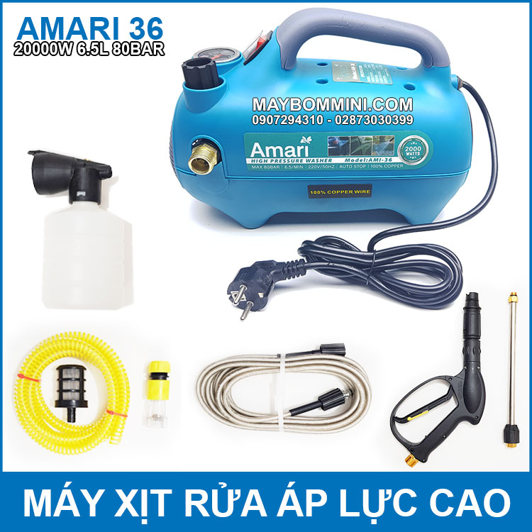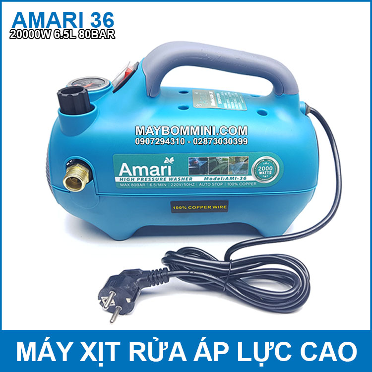 Máy xịt rửa áp lực cao 220V 2000W 80bar 6.5L Amari 36 có chỉnh áp sử dụng vệ sinh máy lạnh điều hòa chuyên nghiệp, máy xịt rửa ôtô xe máy gia đình, vệ sinh bếp nhà hàng, xịt rửa nhà cửa gia đình, vật dụng, máy móc công nghiệp và dùng phun tưới cây được sản xuất với công nghệ mới được khách hàng đánh giá cao về chất lượng, duy chuyển gọn nhẹ linh hoạt tiện lợi.