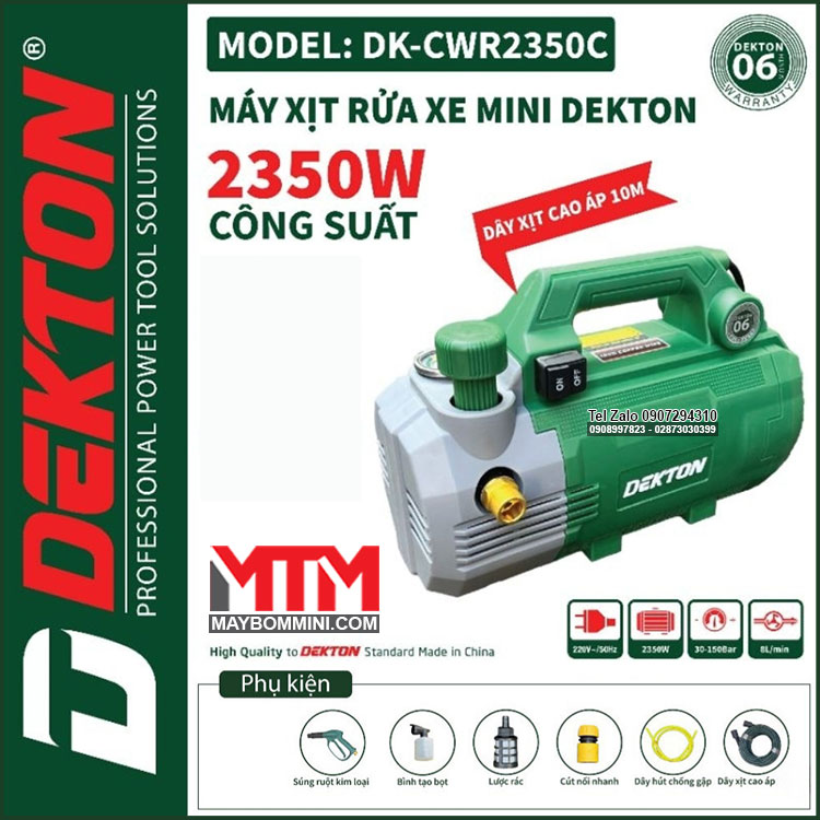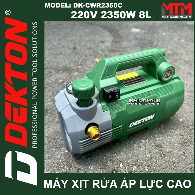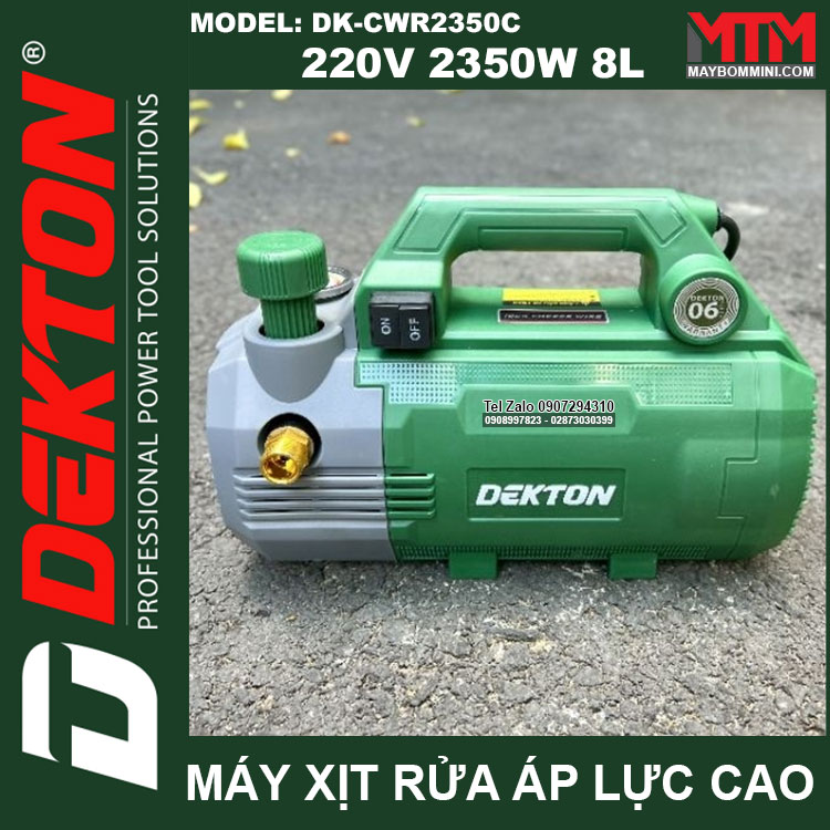 Máy xịt rửa áp lực cao 220V 2350W 150bar 8L Dekton DK-CWR2350C tự động có chỉnh áp. Sử dụng vệ sinh máy lạnh, rửa xe máy ô tô gia đình, vệ sinh nhà hàng, xịt rửa sàn nhà, xịt rửa nhà cửa, vệ sinh vật dụng dụng cụ, phun xịt rửa máy móc thiết bị công nghiệp, phun xịt tưới cây nông nghiệp, phun xịt rửa chuồng trại chăn nuôi. Được sản xuất với công nghệ mới được khách hàng đánh giá cao về chất lượng, duy chuyển gọn nhẹ linh hoạt tiện lợi.