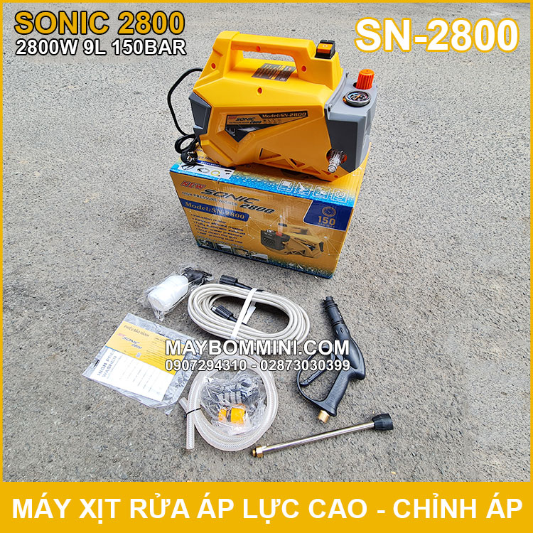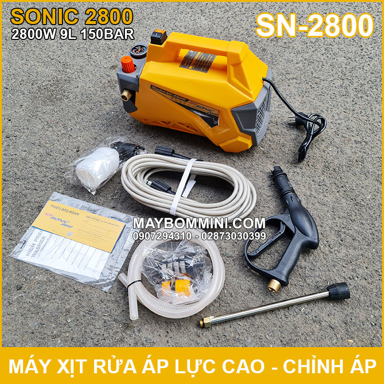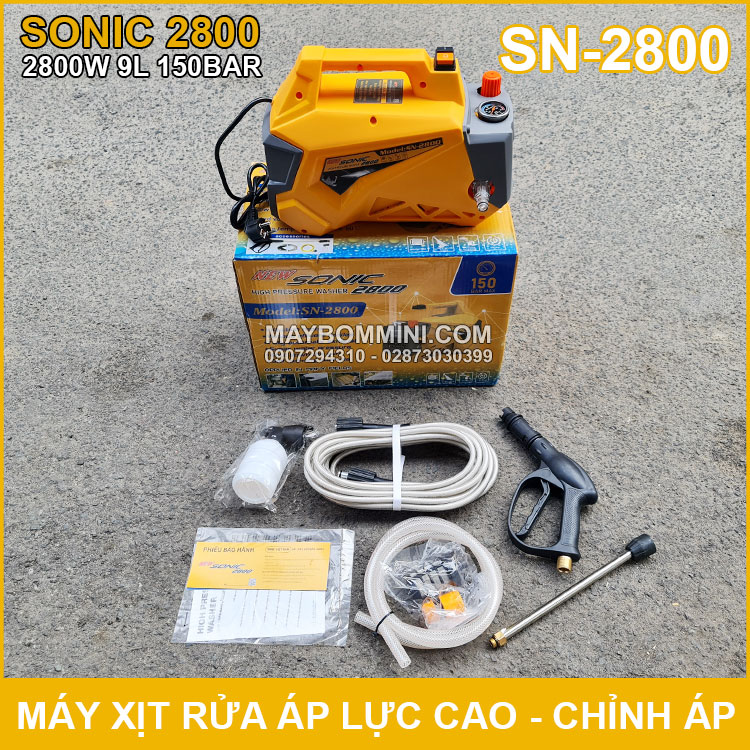 Phân phối máy xịt rửa áp lực cao 220V 2800W 150bar 9L Sonic SN-2800 có chỉnh áp sử dụng vệ sinh máy lạnh điều hòa chuyên nghiệp, máy xịt rửa ôtô xe máy gia đình, vệ sinh bếp nhà hàng, xịt rửa nhà cửa gia đình, vật dụng, máy móc công nghiệp và dùng phun tưới cây được sản xuất với công nghệ mới được khách hàng đánh giá cao về chất lượng, duy chuyển gọn nhẹ linh hoạt tiện lợi.