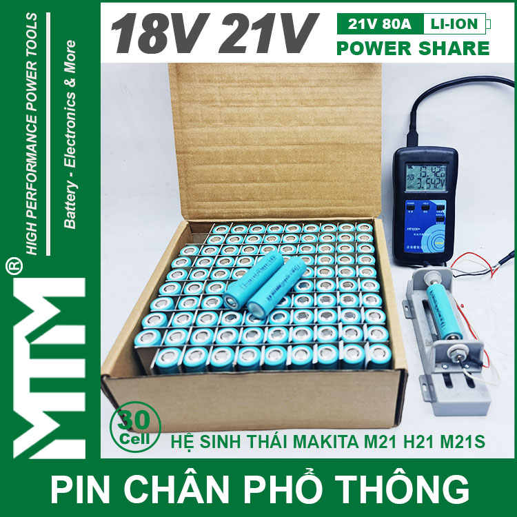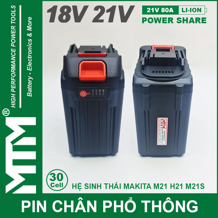 – Pin cho thiết bị cầm tay 21V có trên thị trường sử dụng khe cắm pin Makita.