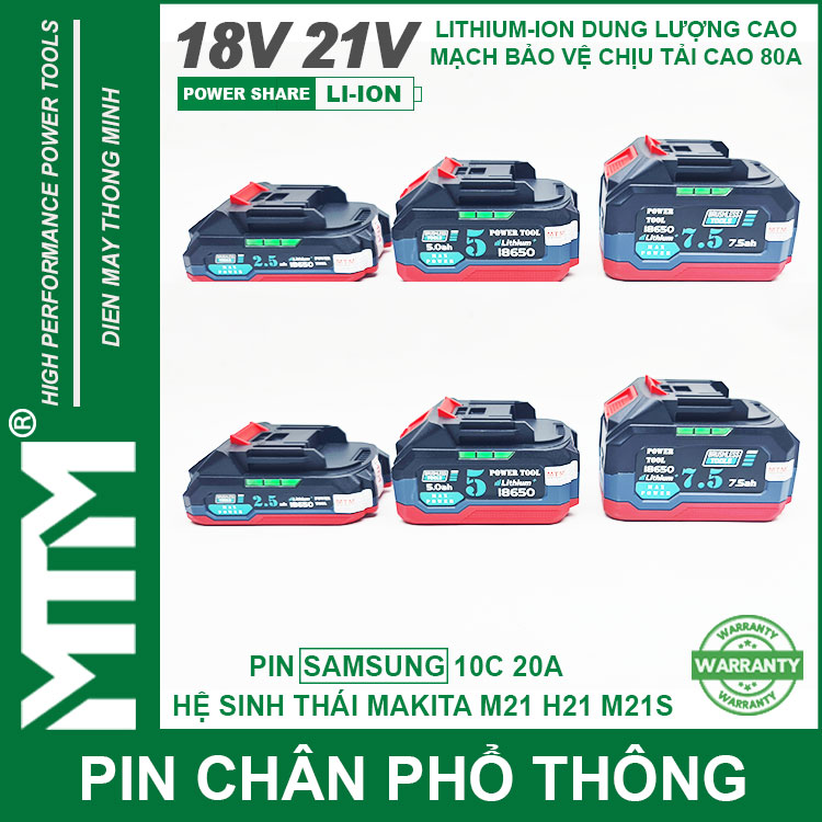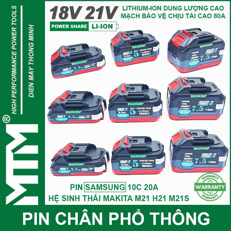 Pin chân phổ thông Makita 18V 21V 2.5Ah 5.0Ah 7.5Ah 8.0Ah 10Ah 5cell 10cell 15cell 20cell