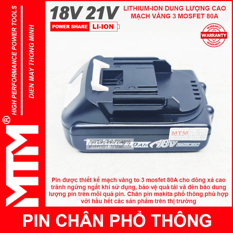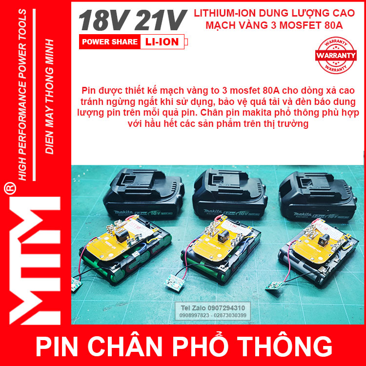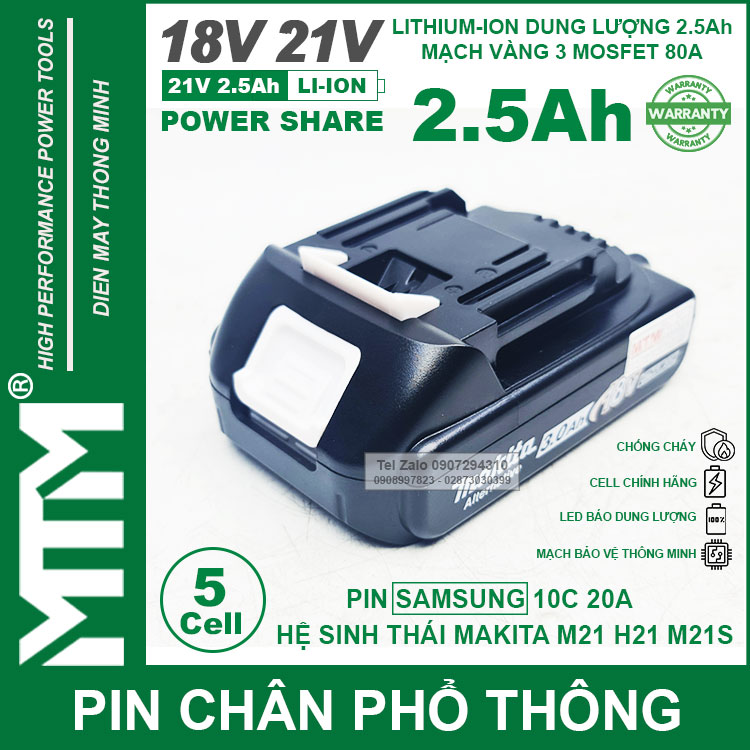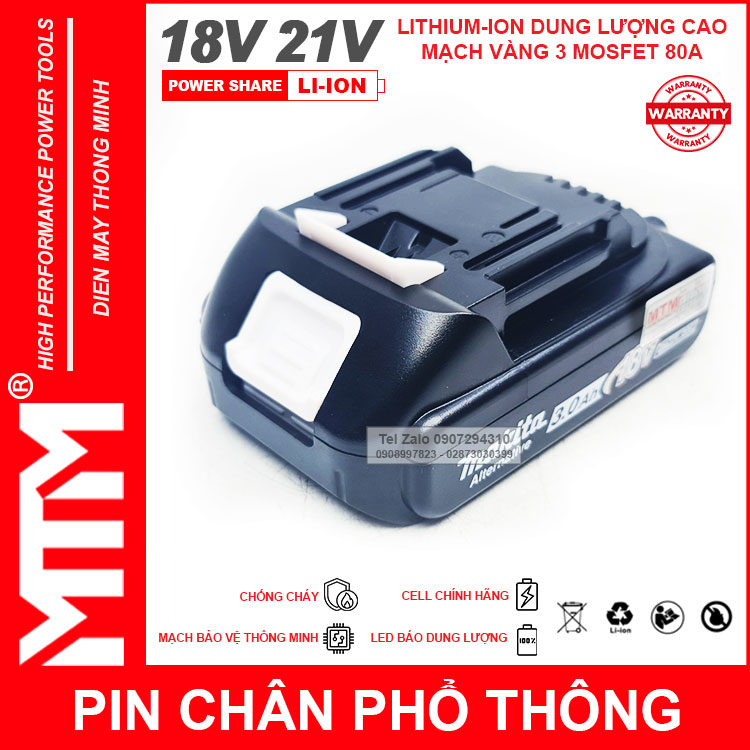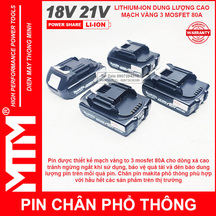 – Pin cho tất cả các thiết bị sử dụng điện DC 18V 21V khe cắm pin Makita.