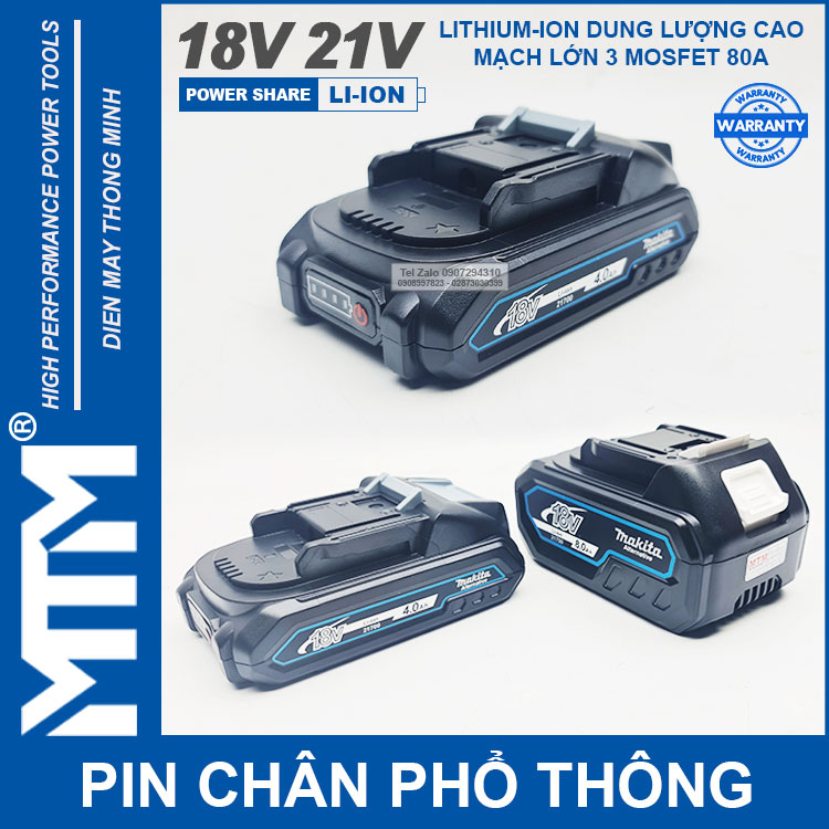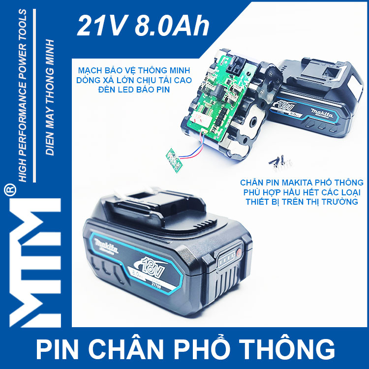 – Pin cho thiết bị cầm tay 21V có trên thị trường sử dụng khe cắm pin Makita.