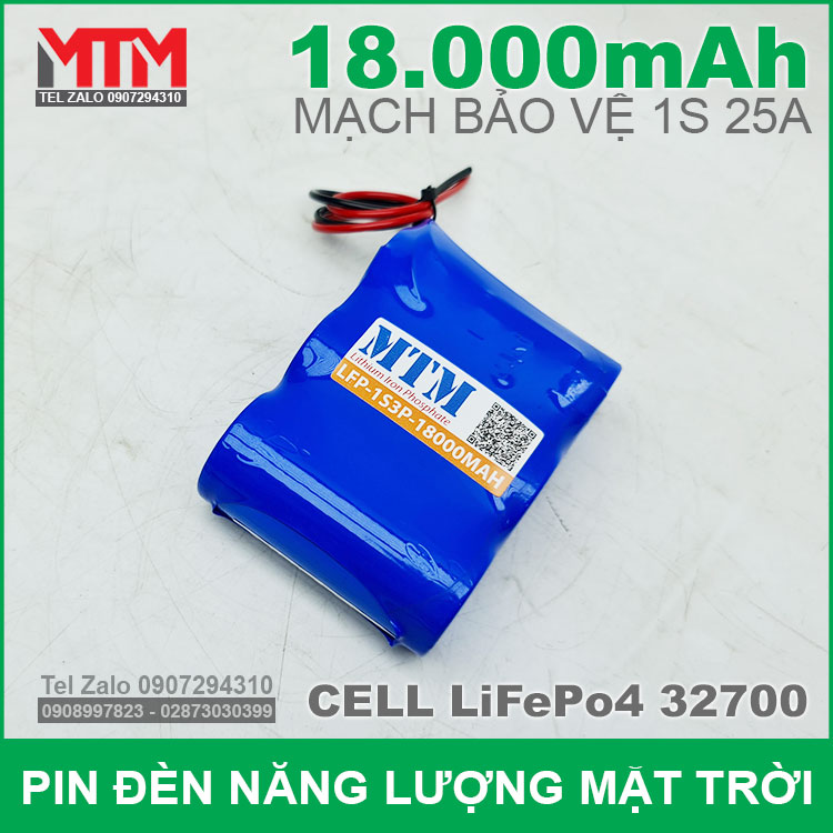 Pin đèn năng lượng mặt trời 3.2V 18Ah MTM dung lượng lớn cell pin sắt LiFePo4 32700 có mạch bảo vệ 25A sử dụng bền lâu đúng dung lượng cao cấp. Sử dụng thay cho pin đèn năng lượng mặt trời có tuổi thọ kém dung lượng thấp.