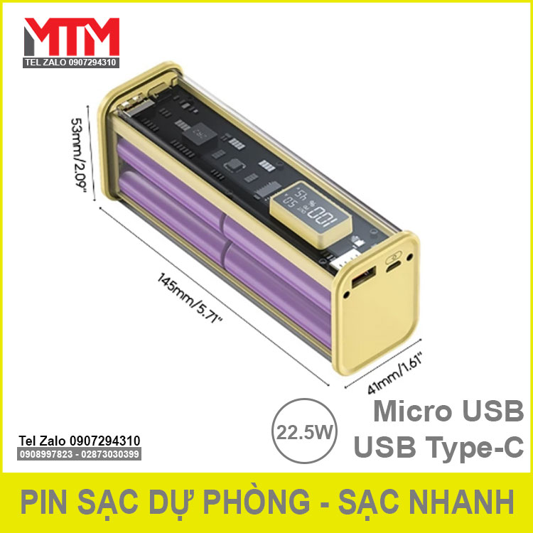 Sạc dự phòng 16000mAh 8 cell 22.5W – sạc nhanh