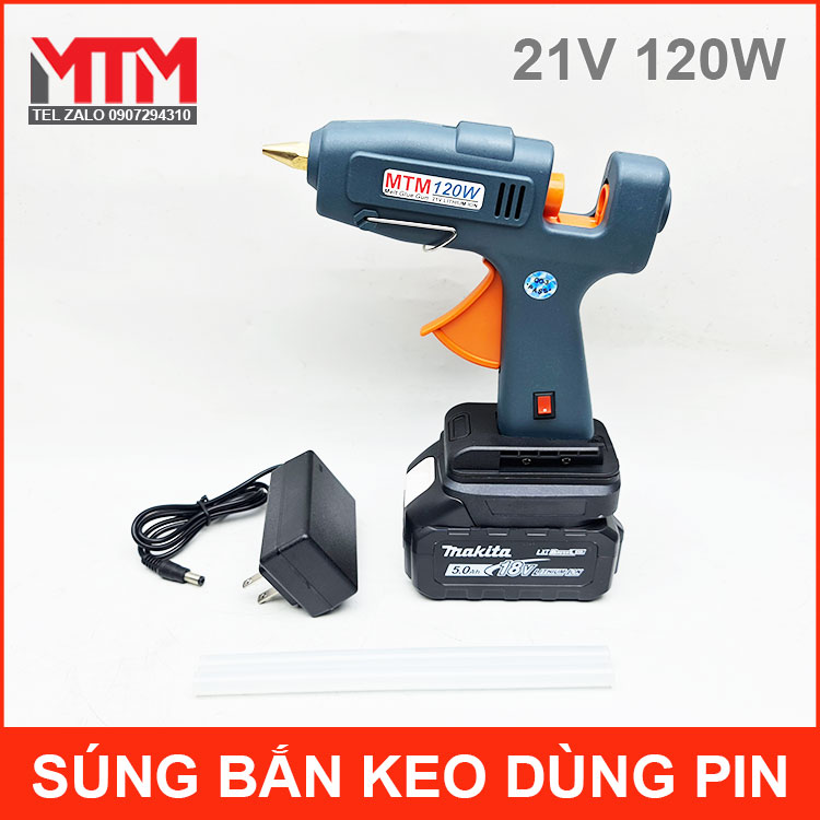 Súng bắn keo dùng pin Lithium 18V 21V 120W MTM – kèm pin và sạc